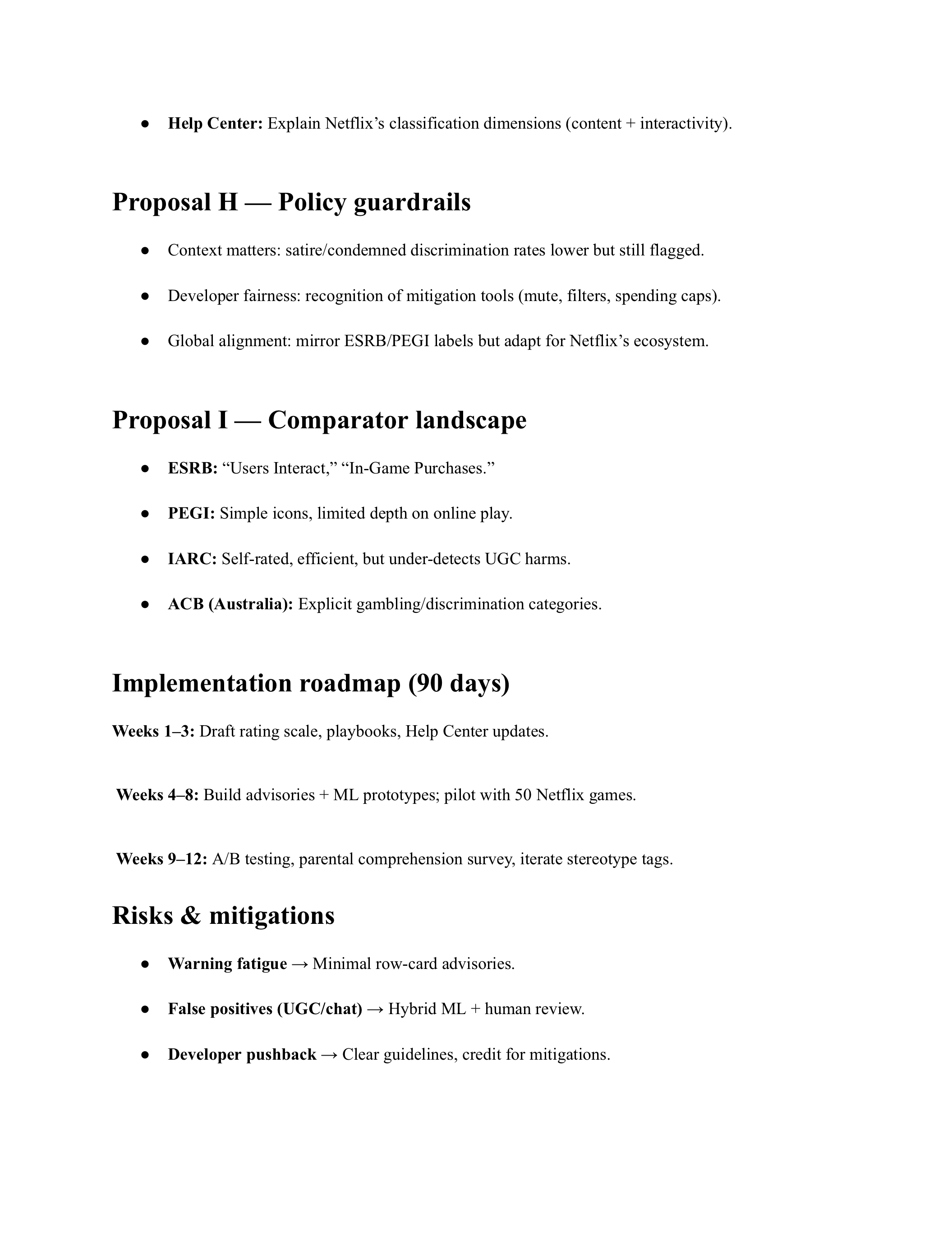 Created a scalable, future-ready ratings framework adaptable to Netflix’s global gaming catalog.