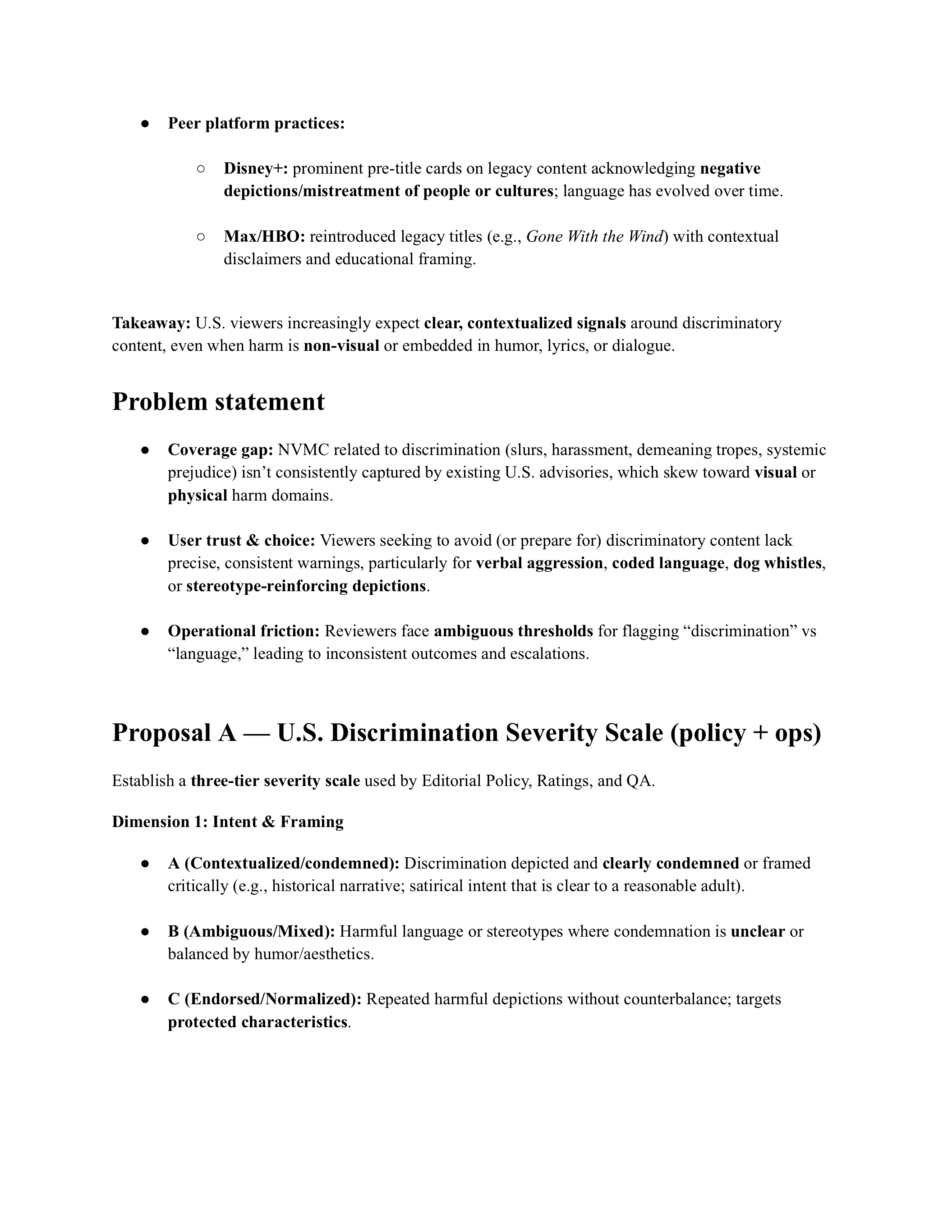 Authored the exploratory report “Optimizing Discrimination NVMC & Behavior/Violence Tags for the U.S. Market,” proposing new frameworks for surfacing non-visual mature content.