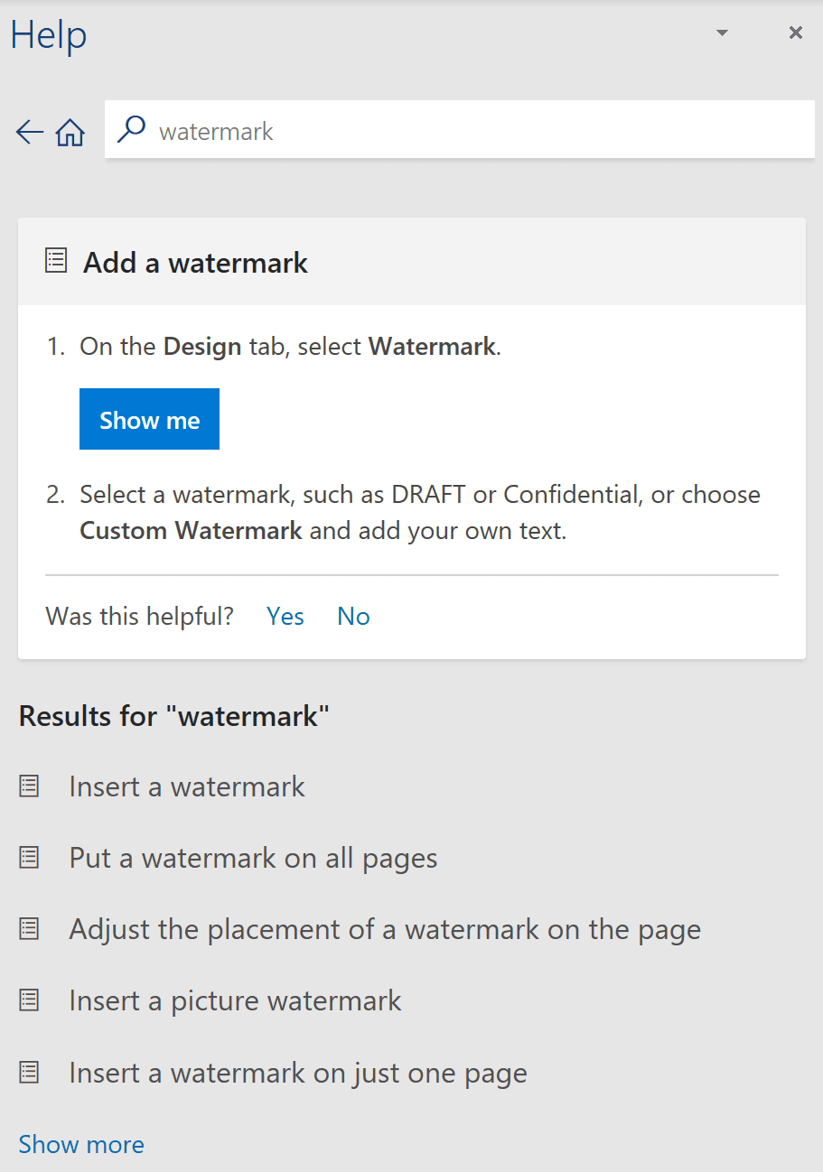 Help Pane - Microsoft 365
